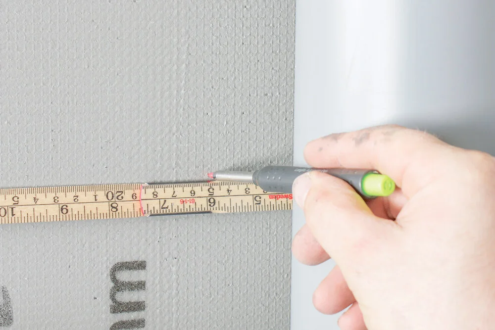 Mål, merk og påfør Tetti monteringslim der hvor kassen skal festes på veggen.